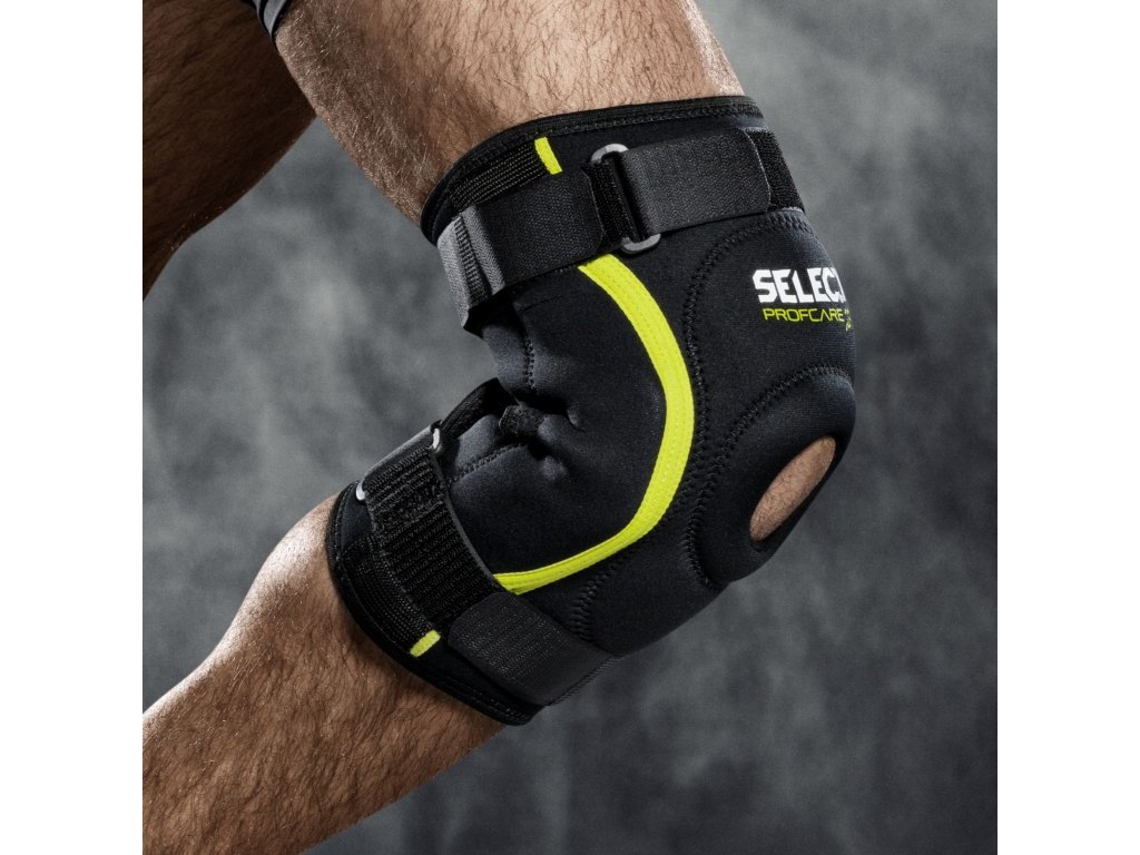 Bandáž kolene ze 4 mm SBR neoprenu, poskytuje teplo a podporu, ulevuje od bolesti svalů a šlach. Výřez na čéšku zaručuje, že na ni není vyvýjen žádný tlak. Možnost nastavení díky zapínání na suchý zip.